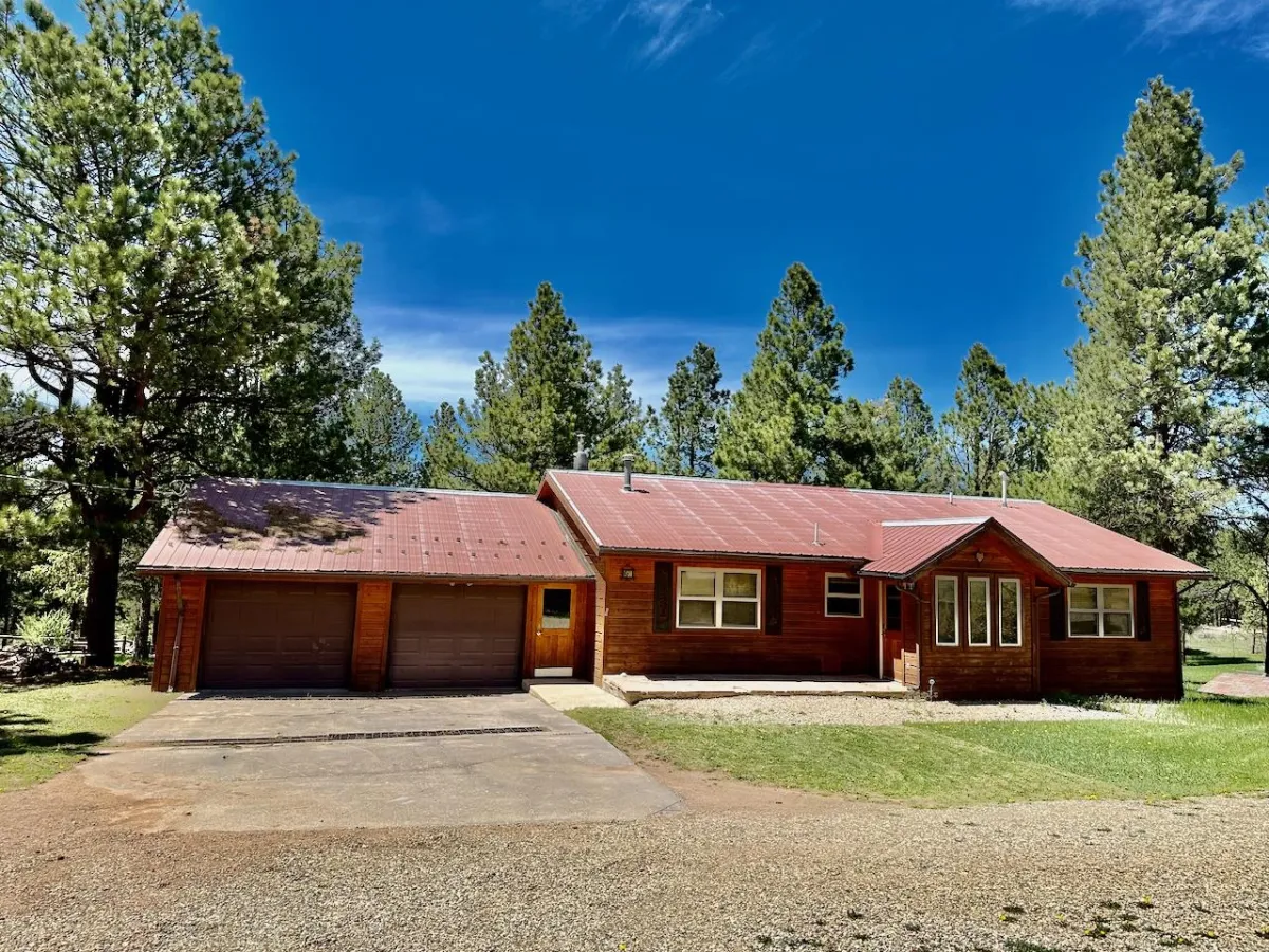 Ready for Ski Season, Spring Break, Easter and beyond…This easy all-weather access mountain home is nestled in the Southern Rockies on the Enchanted Circle of northern New Mexico, minutes from the Angel Fire Resort ski mountain. Being just outside of the Angel Fire Resort but still in the Village of Angel Fire, there are no Resort HOA dues. In the winter, there are filtered views of the Resort ski mountain. Almost 1 acre of beautifully forested, level land. Two bedrooms , two baths on main level and a second living space, primary bedroom and ensuite bath on lower level. Forced air heating. Wood burning fireplace insert in living room. Wall/space heaters for additional spot heating. Large kitchen with S/S appliances. Washer/dryer outlets are in a 195 sq-ft heated area in the lower level which is not included in the square footage in this MLS listing. Appraisers might not include that square footage in their appraisal due to certain appraisal guidelines. The covered back porch is perfect for outdoor dining, entertaining and relaxing. Wonderful back yard for the kids, pets and privacy. There is even a fenced area for pets. This versatile property would make a wonderful primary home or the perfect get-away from the stress of the big city. There are no restrictions on the number of short term rentals in Angel Fire, making for some potentially valuable supplemental income when you’re not in town. Fiber-optic internet with super-fast data transfer is run to the house giving you opportunity to work from home but ski on your lunch hour. The Angel Fire Resort ski mountain/nationally recognized mountain bike terrain park is only a 6 minute drive (2.5 mi) and the $15 mill Angel Fire Resort Country Club with its PGA-rated golf course is about 7 minutes away. Average summer temperature is 76 degrees with no humidity. Mosquitoes, chiggers, no-see’ems, fleas and poisonous snakes don’t like altitude and choose not to live here. A few minutes away is the Angel Fire Airport primarily for private aircraft with a jet-capable runway accommodates your Gulfstream. In December of 2024, Advanced Air added 5 weekly roundtrips from Albuquerque. Only 15 minutes to Eagle Nest State Park for fishing, about a 30 minute drive to Red River, 45 minutes to Taos, 2 hours to Santa Fe and 3 hours to Albuquerque. This is a package that is hard to beat. Plan a visit soon and explore the many possibilities that Angel Fire, NM has to offer.