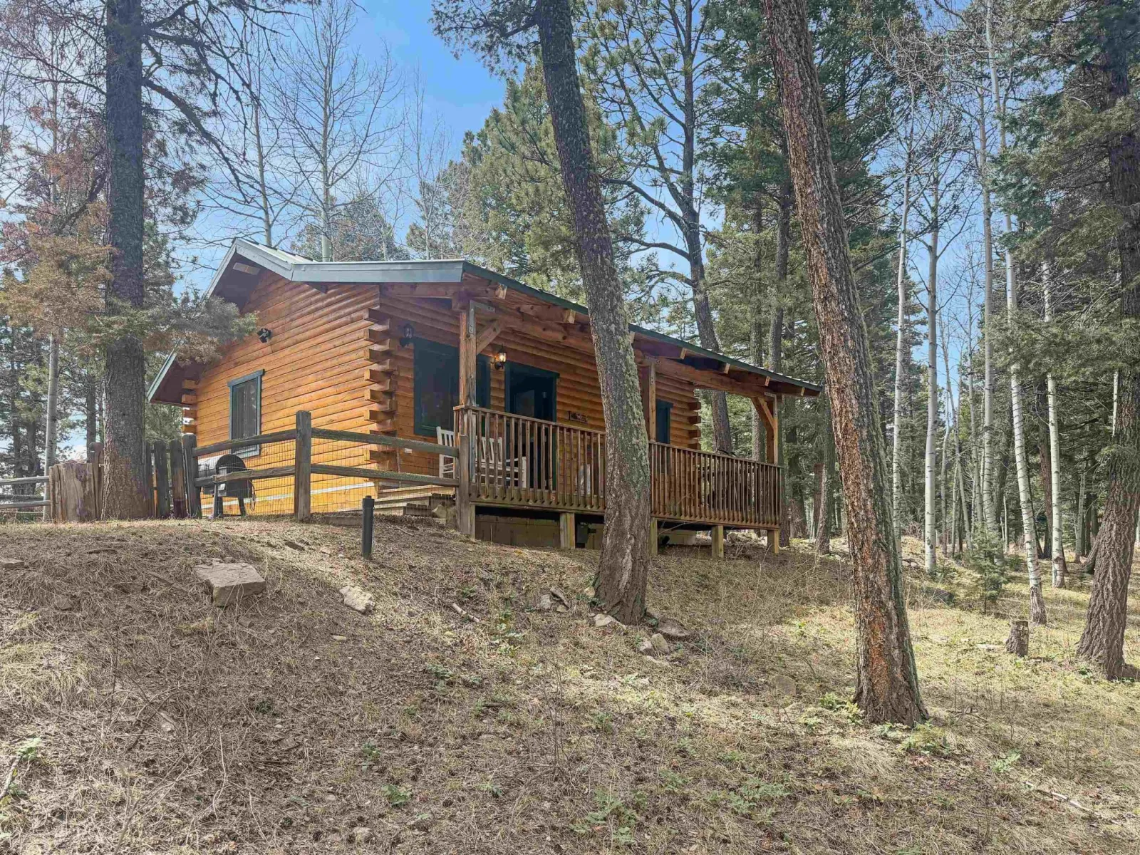 Experience true freedom in Northern New Mexico on this expansive 3.27-acre property located just outside Angel Fire. This cozy cabin serves as an inviting mountain sanctuary, offering rare autonomy with no HOA restrictions or dues while bordering the Carson National Forest. Scaled for simplicity, the one-bedroom, one-bathroom interior provides a warm, intentional atmosphere that serves as an optimal base after a day of exploring the surrounding Sangre de Cristo Mountains. Please note that this property is commercially zoned. With over three acres of private land, on-site utilities, an RV hookup, the possibilities for development or immediate use are endless. You can expand the footprint to create a custom mountain retreat, utilize the commercial zoning for a new business endeavor, or simply enjoy the quiet seclusion of the native pines and the charming cabin already on-site. You are ideally positioned to enjoy the best of the region, from the slopes and bike trails of Angel Fire Resort to the serene waters of Eagle Nest Lake. Whether you are seeking a peaceful weekend getaway or a rugged basecamp for year-round adventure, this property offers the space and independence that is becoming increasingly hard to find. Call us today to discuss the potential of this land and schedule your showing!