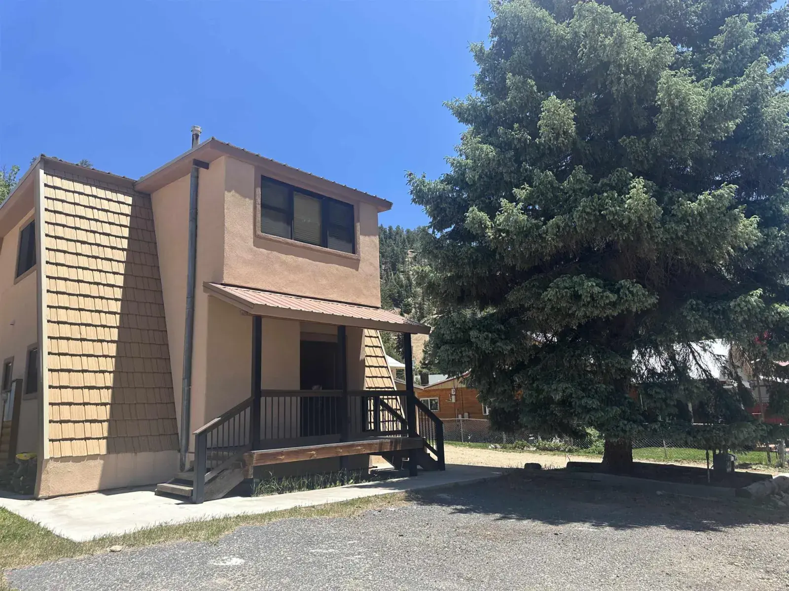 Here’s a rare opportunity to own a fully updated Red River NM home with guest house and extra lot — perfect for full-time living, vacation ownership, or short-term rental investment. The main house, fully remodeled in 2018, features 1,632 sq ft of updated living space. The open main living area is located upstairs, and includes a stair chair lift for convenient accessibility. Inside you’ll find custom cabinetry, granite countertops, custom tile work in baths and showers, and tile flooring throughout the kitchen, baths, and utility room. The cozy bedrooms feature carpet flooring, and the home is heated with baseboard heat and an energy-efficient tankless hot water heater. A custom fireplace adds the perfect mountain touch for relaxing evenings. Best of all — the home comes fully furnished and move-in ready. The separate guest house offers 1,160 sq ft with 1 bedroom, 1 bathroom, and a partial kitchen ready for updates — ideal for guests, rental income, or multi-generational living. The property sits on .23 acres, which includes an additional lot with a storage building for your outdoor gear, off-road vehicles, or future expansion potential. Located just minutes from Red River Ski Area, hiking trails, Main Street shops, and restaurants, this property offers easy year-round access to Red River’s vibrant lifestyle. Key Features: Fully remodeled Red River NM home with guest house 3 bed / 2 bath main home + 1 bed / 1 bath guest house Granite countertops, custom cabinetry & custom fireplace Stair chair for easy upper-level access Extra lot with storage building Sold fully furnished — turn-key ready Ideal for vacation rental, investment, or full-time living