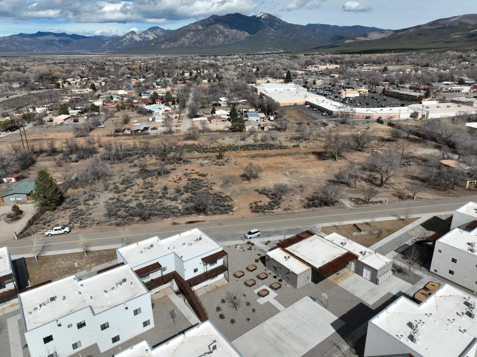 Located in Taos Town between the main thoroughfares of Paseo del Pueblo Sur and Salazar Road, and directly across from the newly built (2022) 75-unit Ochenta Apartment complex, this property provides the space and zoning flexibility for many various development options. Zoned C-1 by the town, C-1 designation is intended for neighborhood-oriented, small-scale commercial uses primarily to supply convenient goods and services to the residents of the neighborhood areas in which the C-1 zone is located. Mixed use is encouraged in the C-1 zone. This parcel is within walking distance of the soon-to-be a new Starbucks, as well as Albertson’s grocery store and a range of other commercial and governmental offices and properties.