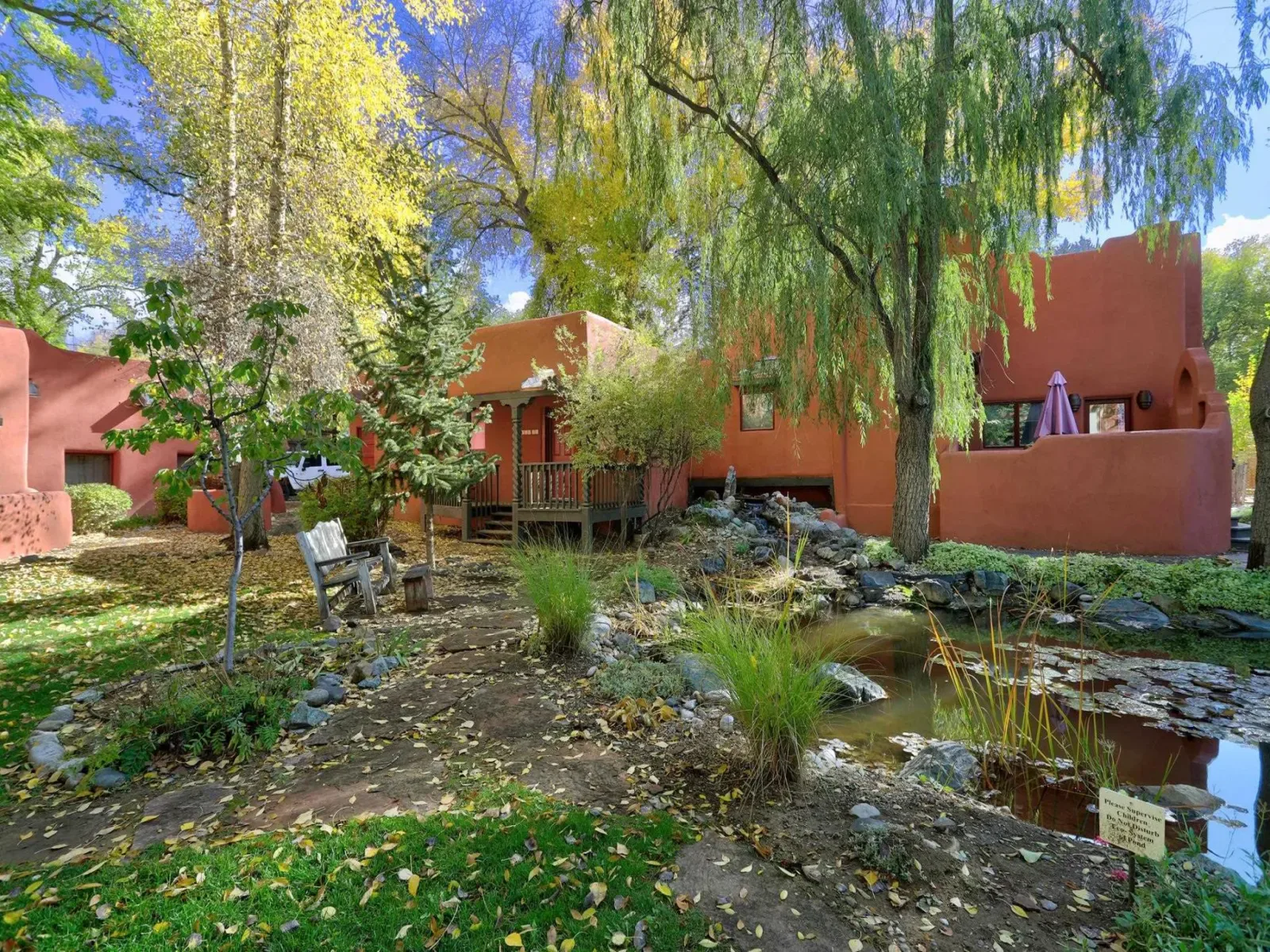 Nestled along beautiful Burch Street—known for its towering shade trees and peaceful charm—this 503 sq ft condo offers a quiet retreat in the heart of Taos. Enjoy a rustic, relaxed setting surrounded by gardens, a lily-pad pond, grassy courtyard, and the soothing sounds of waterfalls and fountains. An inviting front porch overlooks the water features, making it the perfect spot for morning coffee or evening unwinding. Inside, you’ll find a cozy space full of character—ideal as a simple full-time home, artist’s nest or weekend escape. All just a short distance to Taos Plaza, live music, galleries, restaurants, shopping, and the vibrant cultural life that makes Taos special.