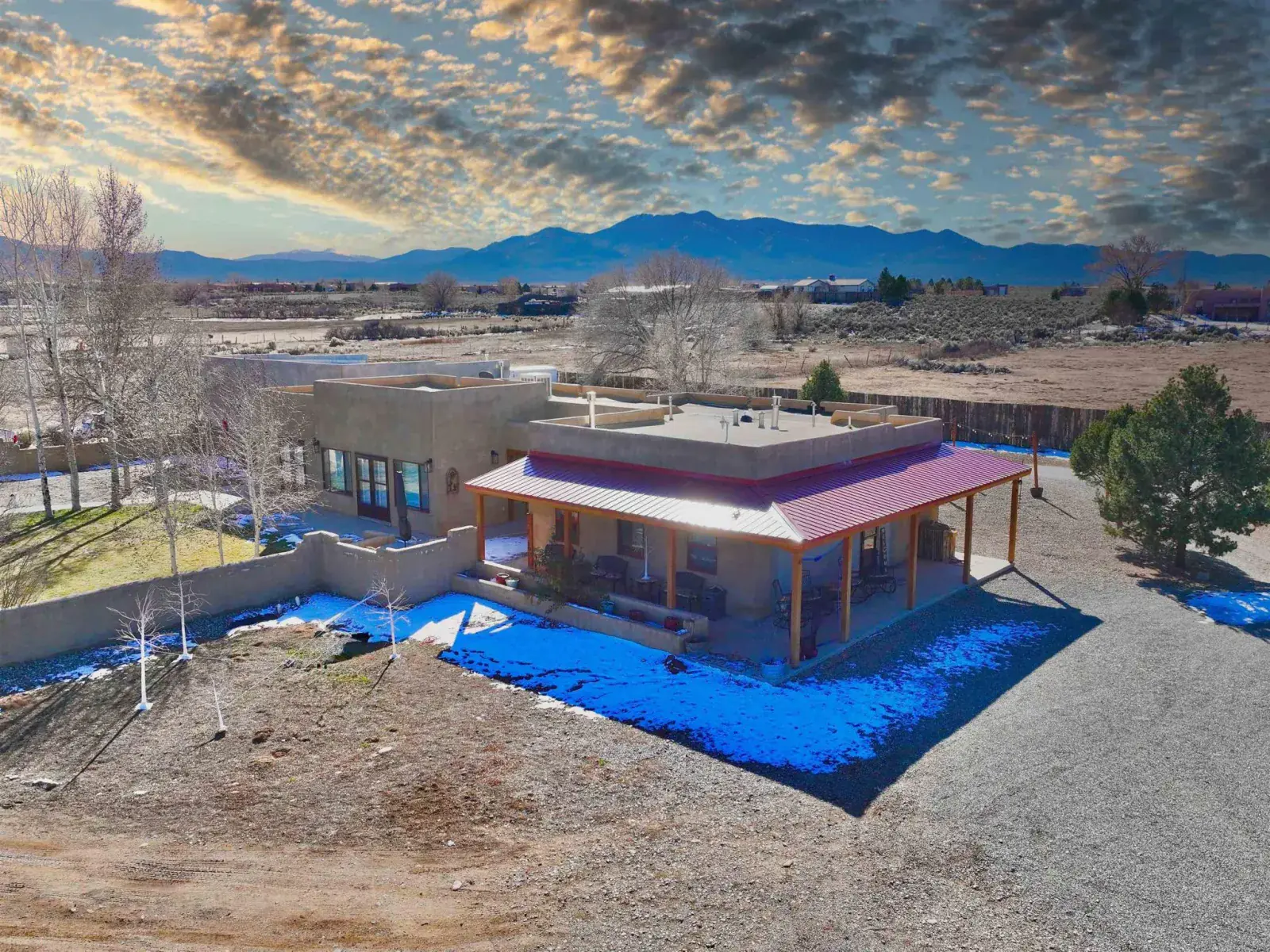 Discover Your Dream Home in the Los Cordovas Valley. Immerse yourself in the epitome of luxury at this exquisite residence nestled in the heart of the Los Cordovas Valley. With an expansive footprint of approximately 2,908 square feet, this four-bedroom, two-bathroom home boasts ample space to accommodate your cherished lifestyle. Encompassing an expansive 1.75 acres of land, the property features an attached three-car garage and a detached two-car garage, providing ample parking for your vehicles. The surrounding landscape is a harmonious blend of beautiful landscaping, enclosed by fencing and stucco walls, creating an unobstructed vista of Taos Mountain and Pueblo Peak. Indulge in moments of tranquility under the covered porches adorning the North, South, and West sides of the home. The property’s entertainment areas are meticulously designed to cater to your discerning tastes, featuring mature trees, lush greenery, a fire pit, and an array of additional amenities. Upon entering the home, you will be enveloped in a luxurious ambiance. Heated radiant cement slab floors, tongue-and-groove wood ceilings, decorated with vigas, plaster walls, and updated appliances contribute to the refined atmosphere. The spacious and well-appointed rooms exude a cozy and inviting atmosphere, perfect for a wide-open yet intimate living experience. Schedule an appointment with us today to experience this magnificent home firsthand, whether through an in-person visit or a virtual tour.