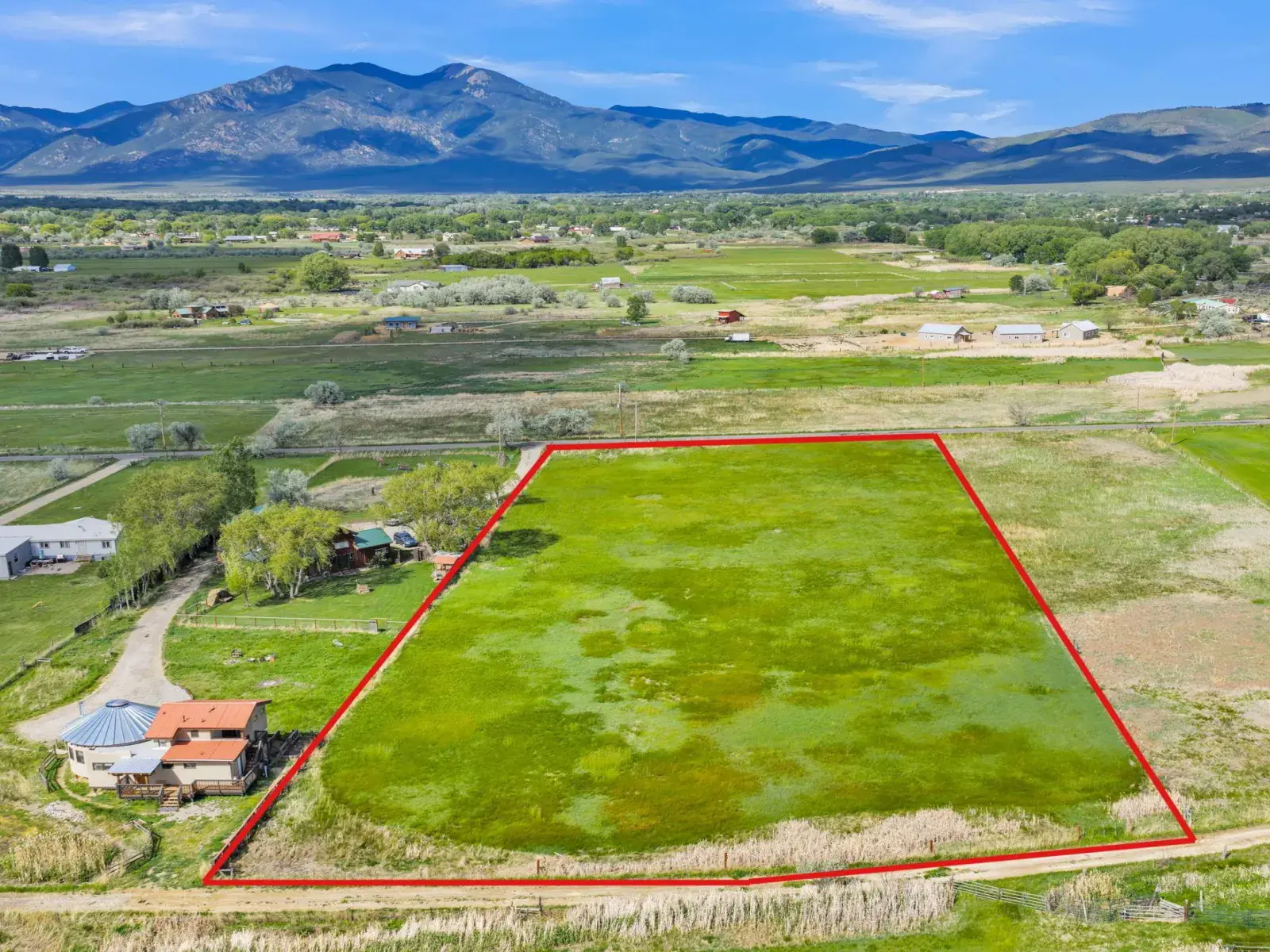 Paradise in the Heart of Taos ~ Perfectly set in a lush green valley pasture within the Taos Valley minutes from Town, you will encounter this incredibly convenient, private, and bountiful 2.98 acres of land ready for you to make HOME. Upon first encounter, you will feel the magic in every sense, and especially so if you’re lucky enough to be here for Sunset and Sunrise, then you’re in for a show. This private, fully fenced lot with a gate has electric and natural gas ready to go already at the lot, drilling for water won’t take much effort, and you have options for septic. If you like gardening and growing things, you love love the topography because things will likely grow fast. Located on a paved road between Lower Ranchitos Road and Camino del Medio, this property couldn’t be in a better spot with all of the amenities within minutes, and an easy outlet to recreational activities at Taos Ski Valley, the Rio Grande River, Hiking and Biking at the Slide Trail, and trout fishing all around. A virtual depicted home has been placed in a photo to spark creativity. This property in paradise is special, make it your own.